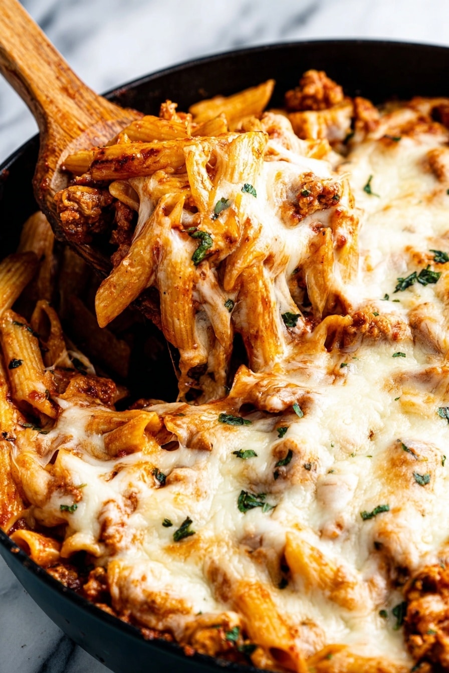 Sprinkle mozzarella or your Italian blend cheese over the pasta and cover the pan one last time. The residual heat melts the cheese beautifully. If you want to get a bubbly, golden top, pop the pan or transfer to an oven-safe dish and broil for 2-3 minutes—but it’s delicious either way. Finish with a light dusting of Parmesan cheese for that nutty, salty boost. Serve warm and enjoy every comforting forkful!
