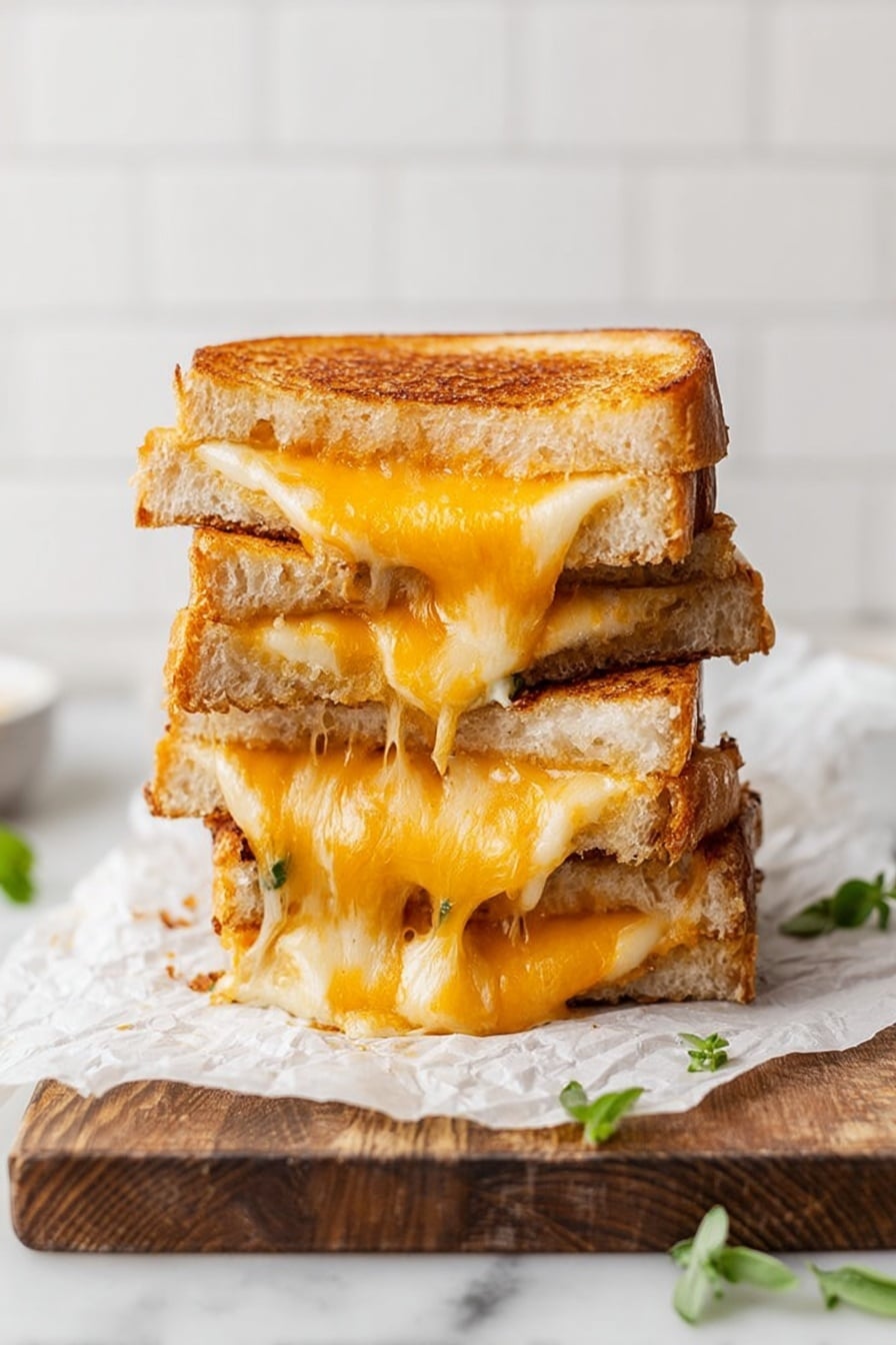 My favorite sides to round out this meal are classic tomato soup or a crisp garden salad. The acidity of tomato soup perfectly cuts through the richness of the cheeses. For something lighter, baby arugula with lemon vinaigrette works beautifully too.