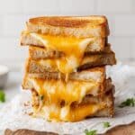 A delicious and indulgent 4 Cheese Garlic Grilled Cheese sandwich made with a blend of provolone, sharp cheddar, gouda, and parmesan cheeses, infused with garlic butter, and grilled to golden perfection on sourdough bread. Perfect for a quick, comforting meal that satisfies cheesy cravings with a savory garlic twist.