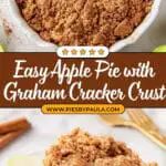 • Tips: Peel, core, and slice the apples uniformly for an even texture. Using a store-bought or premade graham cracker crust can save preparation time. For homemade crumbs, pulse graham crackers in a food processor or crush in a sealed bag with a rolling pin. Protect crust edges with foil if browning too quickly. Place a baking sheet below the pie to catch any drips. Cool the pie completely before slicing to avoid a runny filling.
