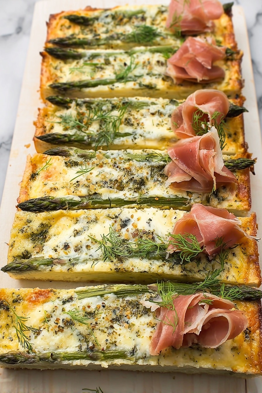 Slice between the asparagus spears for those picture-perfect pieces and add your favorite garnishes—fresh herbs, parmesan, maybe some prosciutto or lemony arugula. I often enjoy mine warm or room temperature, which is great if you want to make it ahead. The layers of flavor really come through best that way.