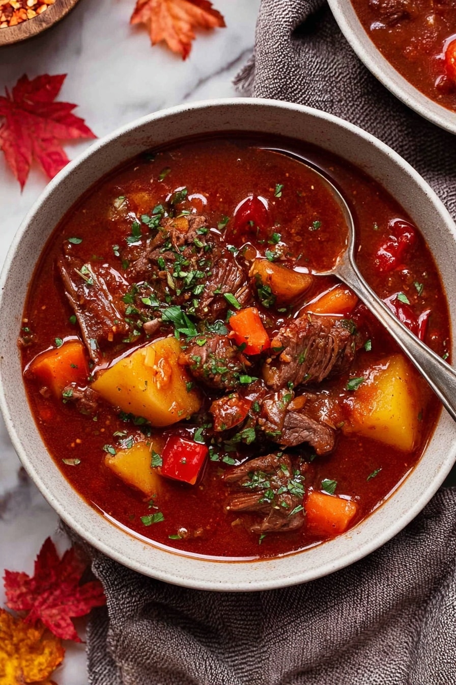 - Serve: Ladle the goulash into bowls, sprinkle with finely chopped parsley for freshness, and serve immediately. Ideal enjoyed as is or with crusty bread for soaking up the rich sauce.