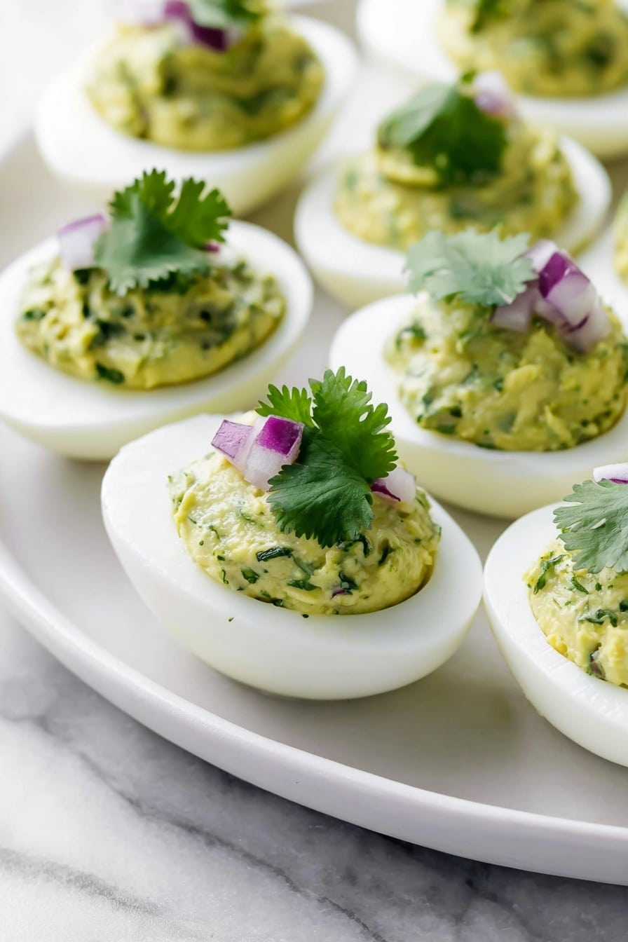 I love topping these deviled eggs with a bit of extra cilantro and red onion for that pop of color and fresh bite. Sometimes, a sprinkle of smoked paprika or even some toasted sesame seeds adds a fun twist that never fails to impress guests.