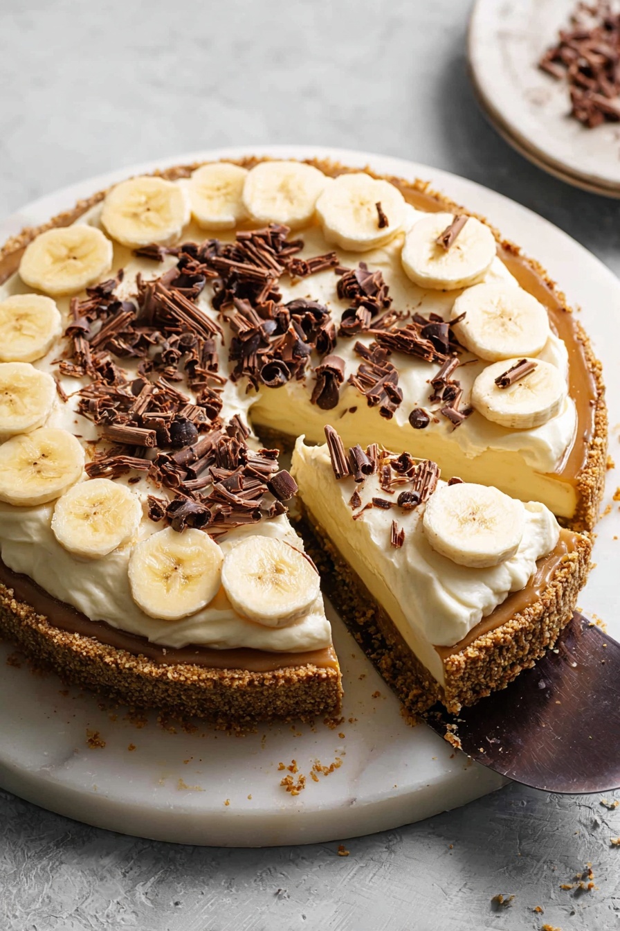 I always finish my Banoffee Pie with a generous sprinkle of dark chocolate curls—it feels like the perfect little flourish without being over the top. If you want to get creative, a dusting of cocoa powder or a few caramel drizzle lines add a gorgeous touch. And of course, a sprig of fresh mint can add a pop of color if you’re serving it for guests.