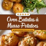 Batatas à Murro is a traditional Portuguese recipe featuring waxy potatoes that are roasted whole until tender, then gently crushed to open up and topped with garlic, olive oil, and a splash of wine vinegar. This method gives the potatoes a unique texture with a crispy exterior and a soft, flavorful interior, perfect as a side dish or appetizer.