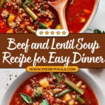 This Beef and Lentil Soup Recipe holds a special place in my kitchen—it’s the kind of meal that feels like a warm hug on a chilly day and works beautifully for feeding family or friends. I love how the lentils soak up the rich tomato and beef flavors, and the fresh herbs at the end really make it sing. I hope you give this recipe a try—once you do, it might just become your go-to comfort soup too. Happy cooking, friend!