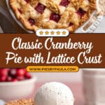 This classic Cranberry Pie recipe features a tangy and sweet fresh cranberry filling infused with warm spices and orange zest, all encased in a flaky homemade or store-bought pie crust with a beautiful woven lattice top. Perfectly baked to golden perfection, this pie offers a delightful balance of tartness and sweetness, making it a delicious dessert for holiday dinners or any cozy occasion.
