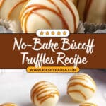 - Add optional decoration: If desired, warm 2 tablespoons of Biscoff cookie butter for 15 seconds, stir, then drizzle or pipe it over the set truffles. Chill again briefly to set the decoration before serving.