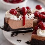 This Black Forest Cheesecake combines the rich, creamy texture of classic cheesecake with indulgent layers of chocolate and cherry flavors. Featuring an Oreo cookie crust, a luscious chocolate-infused cream cheese filling, and topped with homemade cherry pie filling, whipped cream, and chocolate shavings, this dessert is perfect for special occasions or a decadent treat.