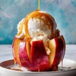 5. Serve Warm: Once cooked, serve the bloomin’ apples warm with a scoop of Breyers Natural Vanilla ice cream and a drizzle of caramel sauce on top for a luscious finishing touch.