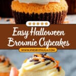 These Brownie Cupcakes combine the rich, fudgy texture of brownies with the light, fluffy sweetness of orange-colored white cake, topped with creamy buttercream frosting and festive Halloween sprinkles. Perfect for a spooky celebration or any time you want a fun twist on classic cupcakes.