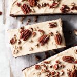 - Assemble and Serve: Spread the frosting evenly over the cooled brownies. Sprinkle the remaining toasted pecans on top, using as many as desired. Slice into squares and serve immediately or store in an airtight container.