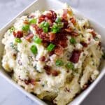 - Final Seasoning and Garnish: Taste the smashed potatoes and adjust seasoning if necessary. Serve topped with the reserved bacon and cheese along with a generous sprinkle of sliced green onions for freshness and color.