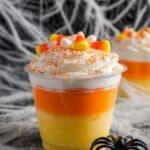 - Decorate: Garnish each cup with candy corn pieces and sprinkle orange and yellow colored sugars over the whipped topping for an eye-catching, festive finish.