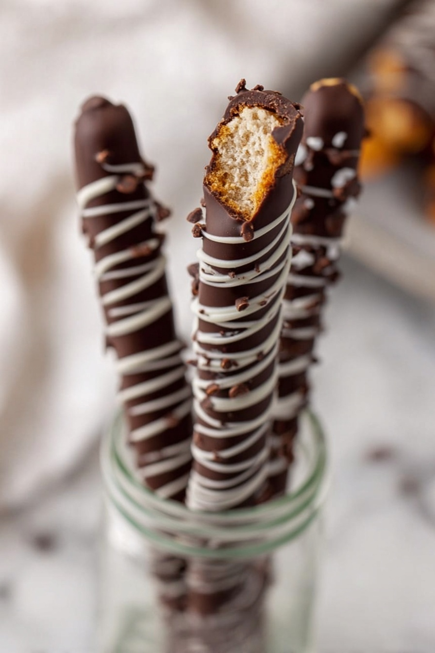 I’m all about that flaky sea salt—it really takes these pretzel rods to the next level. Sometimes I’ll add crushed nuts or festive sprinkles to match the occasion. If you want to keep it classy and simple, just a light dusting of cocoa powder works wonders too.