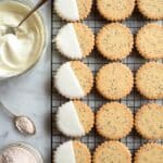 To refresh frozen cookies, bring them to room temperature or warm gently in a 275°F oven for 5 minutes. This brings back the lovely shortbread softness without drying them out.