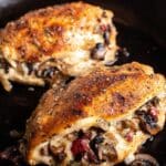 A delicious and satisfying stuffed chicken breast recipe featuring a savory blend of sautéed mushrooms, onions, sun-dried tomatoes, crumbled feta, and melted mozzarella cheese, all baked to juicy perfection.
