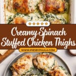 Make sure to fully squeeze the spinach dry and avoid overfilling each chicken thigh. Secure tightly with toothpicks before searing and baking, which helps keep the filling inside where it belongs.