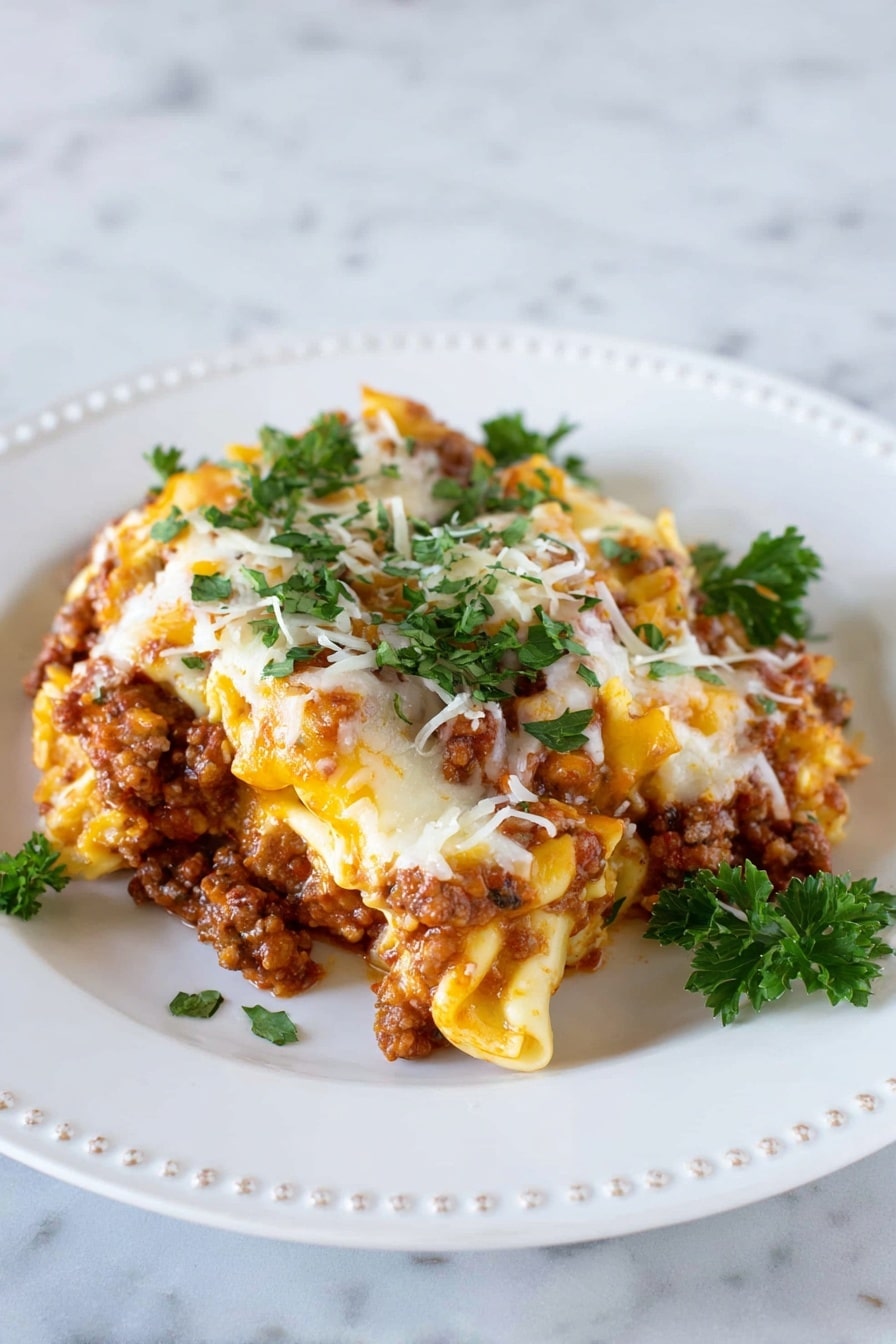 This Easy Cheesy Crockpot Tortellini with Ground Beef recipe is a comforting and hearty slow cooker meal featuring tender cheese-filled tortellini, savory ground beef, onions, marinara sauce, and melty mozzarella and cheddar cheeses. Perfect for a hands-off dinner, it combines rich Italian flavors with simple prep and the convenience of slow cooking, topped with fresh parsley for a burst of color and freshness.