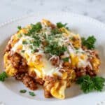 This Easy Cheesy Crockpot Tortellini with Ground Beef recipe is a comforting and hearty slow cooker meal featuring tender cheese-filled tortellini, savory ground beef, onions, marinara sauce, and melty mozzarella and cheddar cheeses. Perfect for a hands-off dinner, it combines rich Italian flavors with simple prep and the convenience of slow cooking, topped with fresh parsley for a burst of color and freshness.