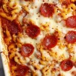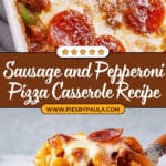 This delicious Pizza Casserole recipe combines hearty Italian sausage, mushrooms, bell peppers, and a blend of tomato sauces with a cheesy cavatappi pasta bake. It’s topped with melted mozzarella and crispy pepperoni, making it a perfect comforting dinner that everyone will love.