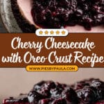 This luscious Cherry Cheesecake recipe features a crunchy Oreo crust, a creamy cherry-infused cheesecake filling, and a vibrant homemade cherry topping. Combining fresh or frozen cherries with a smooth cream cheese batter, this dessert is baked in a water bath for the perfect texture and finished with a sweet cherry topping that elevates this crowd-pleasing classic to a delightful new level.