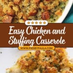 A comforting and easy-to-make Chicken and Stuffing Casserole featuring tender rotisserie chicken, creamy chicken soup, nutritious frozen broccoli, and a fluffy seasoned stuffing topping baked to golden perfection.