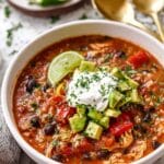 When I serve this soup, I love topping it with crunchy tortilla chips or strips for texture, a handful of fresh cilantro for brightness, a dollop of sour cream to balance the heat, and diced avocados for creaminess. A squeeze of lime juice right before eating adds that zingy lift that makes each spoonful sing. And if you like some extra zing, a few drops of hot sauce never hurt.