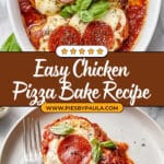 This Chicken Pizza Bake recipe combines juicy, seasoned chicken breasts with classic pizza flavors like marinara sauce, melted mozzarella, and pepperoni, all baked to bubbly perfection. It’s a delicious one-dish meal that satisfies pizza cravings while being protein-packed and easy to prepare.