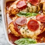 This Chicken Pizza Bake recipe combines juicy, seasoned chicken breasts with classic pizza flavors like marinara sauce, melted mozzarella, and pepperoni, all baked to bubbly perfection. It’s a delicious one-dish meal that satisfies pizza cravings while being protein-packed and easy to prepare.