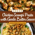 This Chicken Scampi recipe features tender, seasoned chicken pieces seared to perfection and tossed in a luscious butter, garlic, and white wine sauce. Combined with al dente spaghetti and fresh parsley, and finished with a sprinkle of Parmesan cheese, this dish offers a flavorful and elegant meal perfect for any occasion.