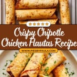 These Chipotle Chicken Flautas are a deliciously crispy and spicy Mexican-inspired appetizer or main dish. Tender shredded chicken is seasoned with smoky chipotle pepper, cumin, and chili powder, mixed with creamy sour cream and melted cheese, then rolled tightly in flour tortillas and golden-fried to perfection. They make an easy weeknight dinner or party favorite with bold flavors and a satisfying crunch.