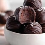 Delightfully rich and indulgent Chocolate Cake Truffles made from a moist homemade chocolate cake combined with creamy chocolate cream cheese frosting, then dipped in dark chocolate and sprinkled with flaky sea salt. These bite-sized treats are perfect for parties, gifts, or a special dessert craving.