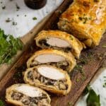 Chicken Wellington is a sophisticated yet approachable dish featuring tender chicken breasts coated with a savory mushroom duxelles and cream cheese mixture, all wrapped in flaky puff pastry and baked to golden perfection. This elegant recipe pairs juicy, flavorful chicken with a buttery crust, ideal for special occasions or a comforting dinner.