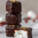 Delicious and simple chocolate covered marshmallows coated in rich semi-sweet chocolate and coconut oil, perfect for a sweet treat or party dessert.