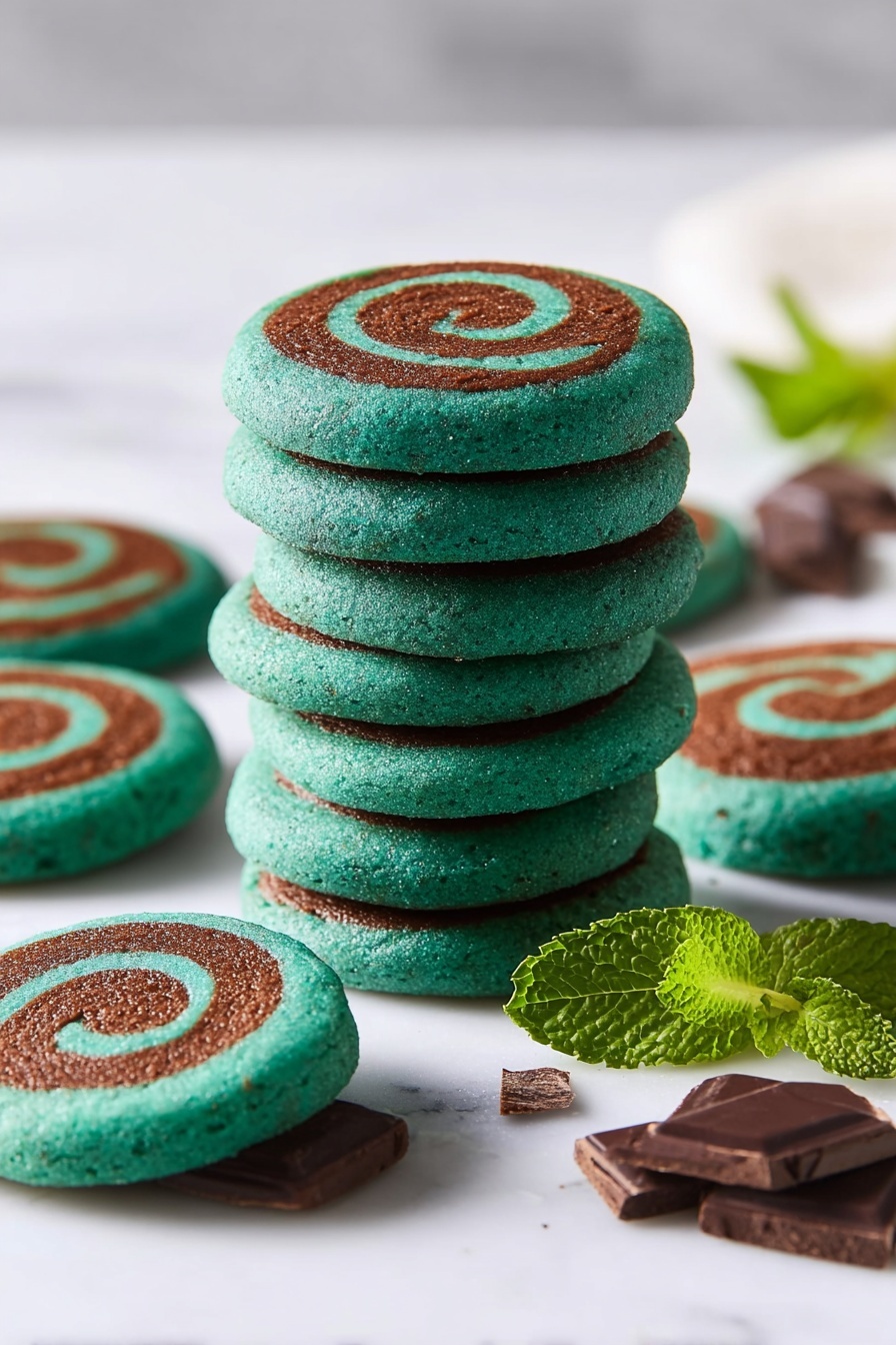 After cooling completely, I store leftover Chocolate Mint Pinwheel Cookies in an airtight container at room temp. They stay fresh and slightly soft for about 5 days, but honestly, mine rarely last that long. If you prefer a bit of crispness, placing a slice of bread in the container helps maintain moisture balance.