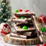 This Chocolate Peppermint Christmas Bark is a festive holiday treat featuring layers of rich dark and creamy white chocolate, topped with crushed peppermint candy and colorful Christmas m&m’s. Simple to make and perfect for gifting or festive snacking, this bark combines smooth chocolates with the refreshing crunch of peppermint for a seasonal delight.