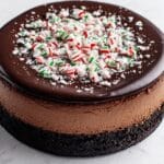 - Finish Cheesecake: Pour the ganache evenly over the chilled cheesecake. Sprinkle generously with crushed candy canes for a festive, peppermint crunch.