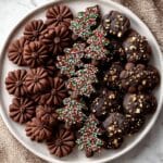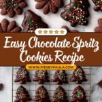 Delight in these classic Chocolate Spritz Cookies, featuring a tender cocoa-infused dough pressed into charming shapes and topped with semi-sweet chocolate and optional sprinkles. Perfectly crisp on the edges and soft inside, these festive cookies are a sweet treat for any occasion.