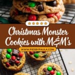 These Christmas Monster Cookies are a delightful treat packed with peanut butter, oats, colorful Christmas M&M’s, and chocolate chips. Soft, chewy, and loaded with festive candy, they’re perfect for holiday gatherings or gifting. The combination of peanut butter and oats gives them a hearty texture, while the M&M’s and chocolate chips add bursts of sweetness and color, making these cookies a fun and festive holiday favorite.