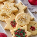 These Christmas Shortbread Cookies are buttery, tender, and melt-in-your-mouth perfect for the holiday season. Made with simple ingredients like butter, sugar, vanilla, and flour, these cookies are easy to prepare, chilled, rolled, cut into festive shapes, and baked until just golden. Optional sprinkles add a cheerful finishing touch, making them ideal for holiday parties, gift-giving, or cozy evenings with a cup of tea.