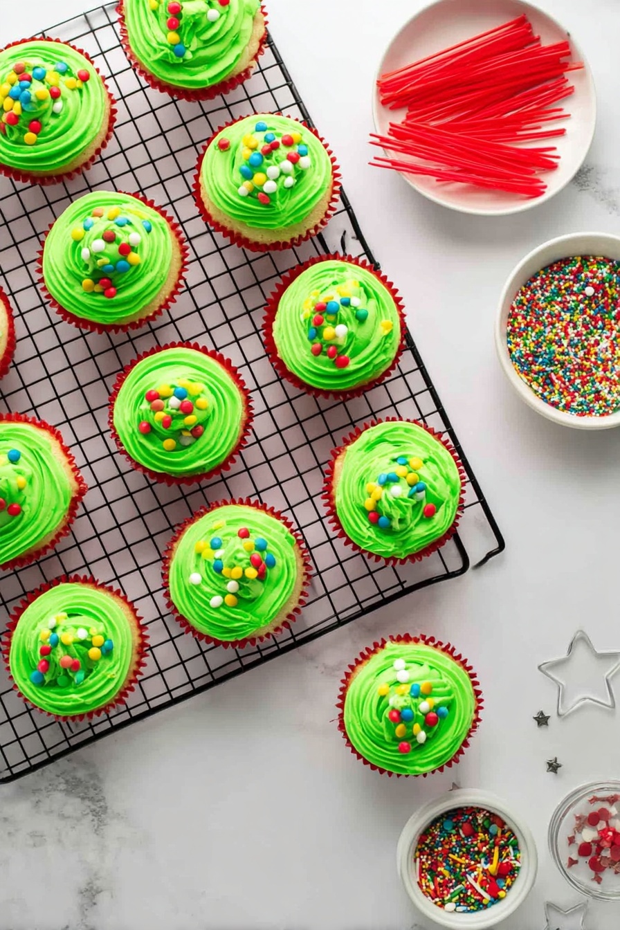These cupcakes shine on their own as a sweet finish, but I love pairing them with simple holiday drinks like hot cocoa or spiced apple cider — it turns snack time into a mini celebration. If you’re serving a dessert spread, adding a bowl of mixed nuts or fresh fruit is a nice contrast to the sweetness.