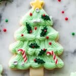 After frosting, I store these Christmas tree sugar cookies in an airtight container layered with parchment paper to keep them from sticking together. They stay fresh and chewy for about 4-5 days at room temperature, though honestly, they rarely last that long in my house!