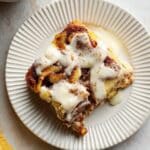 - Serve: Cut the baked French toast into portions and serve warm, enjoying the gooey custard and rich cinnamon flavors topped with the creamy frosting.