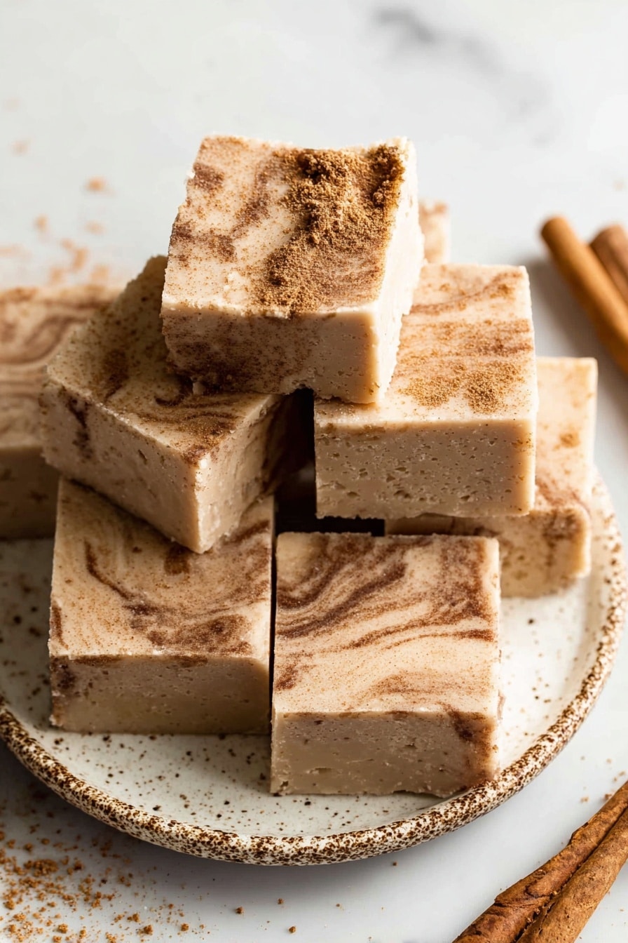 - Pour and Swirl: Pour the fudge mixture into the prepared baking pan and smooth the top with a spatula. Sprinkle the remaining 3 tablespoons of cinnamon sugar evenly over the surface. Using a knife, gently swirl the cinnamon sugar into the fudge to create a marbled effect.