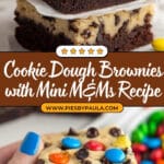 Insert a toothpick into the center of the brownies—when it comes out with just a few moist crumbs (not wet batter), they’re perfectly baked. Overbaking dries them out, and underbaking makes them too gooey to hold the cookie dough.
