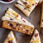 These Starbucks Cranberry Bliss Bars are a better copycat version of the iconic holiday treat featuring moist blondie bars loaded with dried cranberries and white chocolate chips, topped with a luscious cream cheese frosting, extra cranberries, and a white chocolate drizzle with a hint of orange zest for a festive flavor.