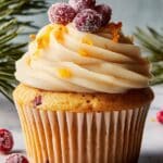 - Frost and Garnish: Spread the white chocolate frosting over the cooled cupcakes. Garnish each cupcake with finely grated orange zest and a few sugared cranberries for a festive finishing touch.