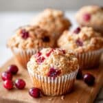 Absolutely! Frozen cranberries work just fine and are actually a good choice if fresh ones aren’t available. Just toss them directly into the batter without thawing to prevent the muffin batter from becoming watery and to keep the cranberries evenly distributed.