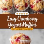 Delight in these moist and tangy Cranberry Yogurt Muffins, a perfect balance of tart cranberries and creamy yogurt blended into a fluffy muffin. Ideal for breakfast or a snack, these muffins are easy to make with simple ingredients and offer a delightful burst of flavor in every bite.